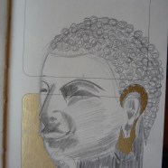 Last night at the harried free Friday museum crawl I got two quick sketches before leaving to catch a former colleague’s band at 8:00 – except that it’s at 8:00 today. The buddha cracks me up because the mouth is small and tight under the nose – as if he too can smell my last post. I fancied it up this morning warming up the gold pen I bought at lunch yesterday. The “Smile of Wood” sculpture kind of creeps me out. It moves around the museum and you turn a corner and – creep out. But it was the first well lit 3D thing I saw with a quiet spot to stand. Today is International Sketch Day and Urban Sketchers is convening shortly for the Comi-Con and Chocolate fest … about right now. Yipes!