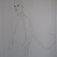 I love Elizabeth Peyton. When I decided to settle into the arc of a blue silk blouse with couture excess, I didn’t know that I’d want to open up Elizabeth Peyton and hope to channel that hue-magic onto a copied image from a catalog. I’m lingering for inspiration on page 179 – Sara, 2002 or maybe page 75, Piotr on Couch, 1996? So vital. The fluidity of that scarf drew me to this image and I labored over Memorial Day weekend to get a decent outline – that slouchy cool evoked the work in the book. We’ll see how it goes. I will also try to keep the cautionary specter of Isadora Duncan at bay…