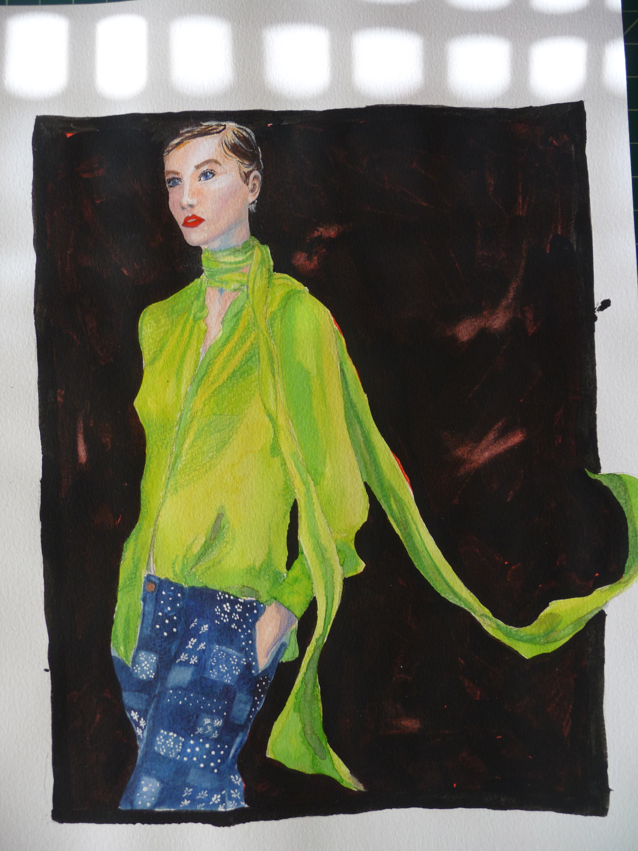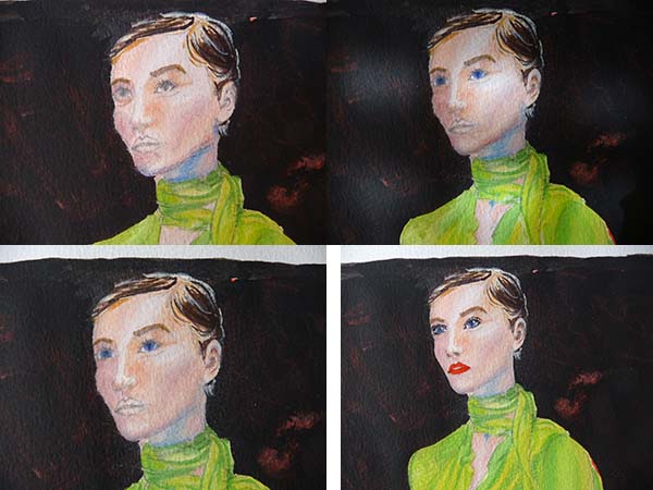 Finishing this felt like a best effort at making the dead resemble the living: there is no light left and the face has a flat, painted Barbie Doll quality. A last ditch effort with gauche felt like busting out the “full coverage foundation” to camouflage serious skin tone issues. Over the last week, this gal’s gone from: